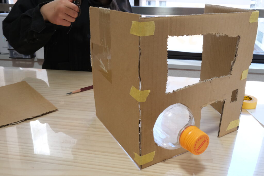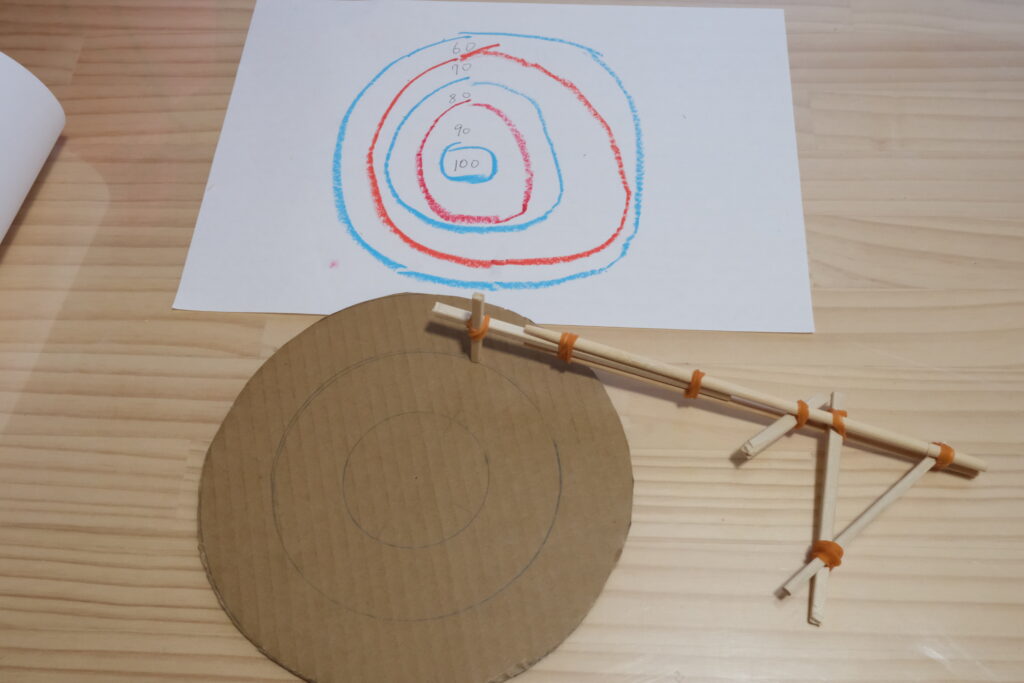 一回の授業で、割り箸鉄砲が完成しました!素晴らしい!的を作り始めました!