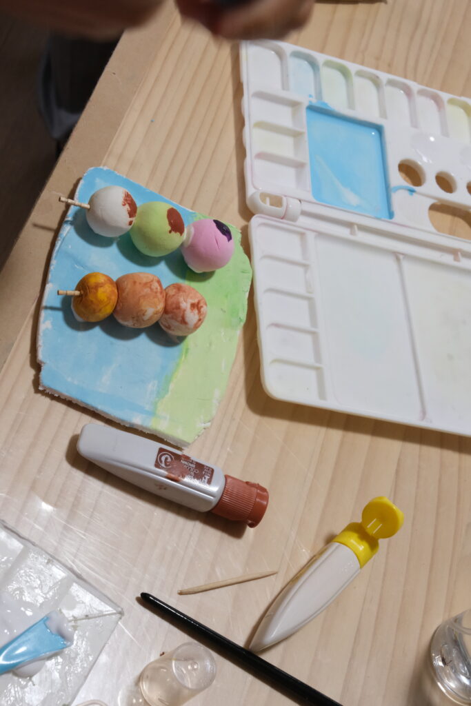 内部にフェルト化しやすい白い羊毛を使い、外側にカラーの羊毛を使います。