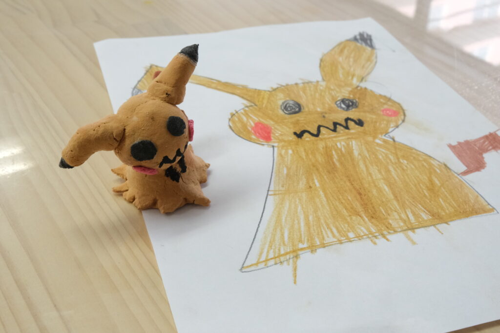 大好きなポケモン、ミミッキュを粘土で作ってくれました。そのあまりの上手さにみんなも大喜び!!